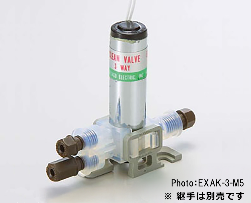ゼロポンピングボリューム構造を採用しポンピングボリュームが少ない小型の耐食性バルブです。接液部には、PFAとPTFEを使用しており、高い耐薬品性があります。接続はM5かニップルを選べます。