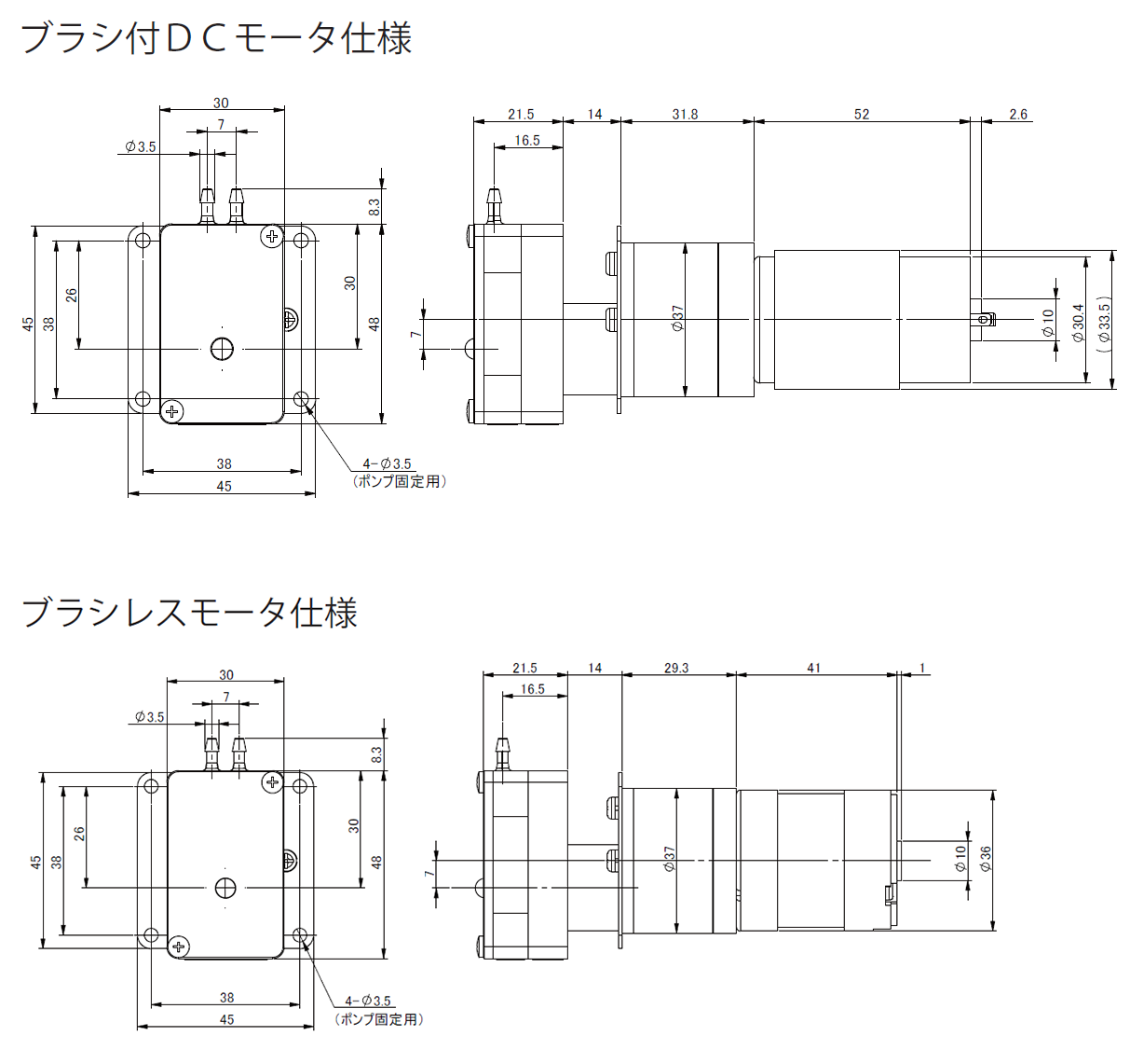 - ステッピングモータータイプもご用意しています。詳細は、リングポンプ RP-Hシリーズ (ステッピングモーター)からご確認ください。