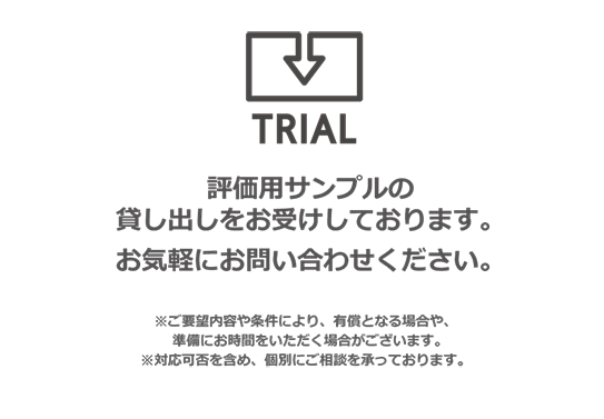 - 評価⽤サンプルの貸し出しをお受けしております。お気軽にお問い合わせください。