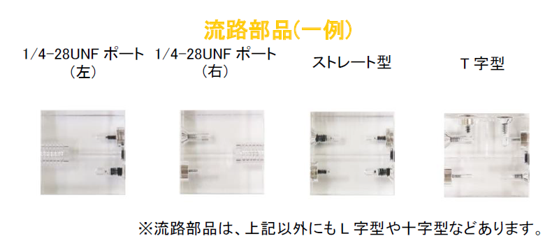 - 流路は透明なので、流体の観察も可能です。